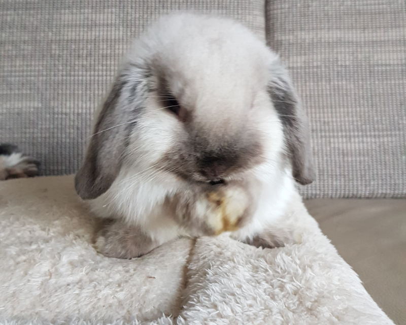 Een konijn houdt van aandacht, krijgt graag een aai over de bol, maar is geen knuffel. De meeste konijnen houden er niet van om opgepakt te worden omdat het prooidieren zijn. Natuurlijk proberen wij onze bunnies zo veel mogelijk te laten wennen aan mensen. Daarom nemen wij ze elke dag op schoot en blijven we bij ze zitten als ze buiten in de ren aan het spelen zijn.